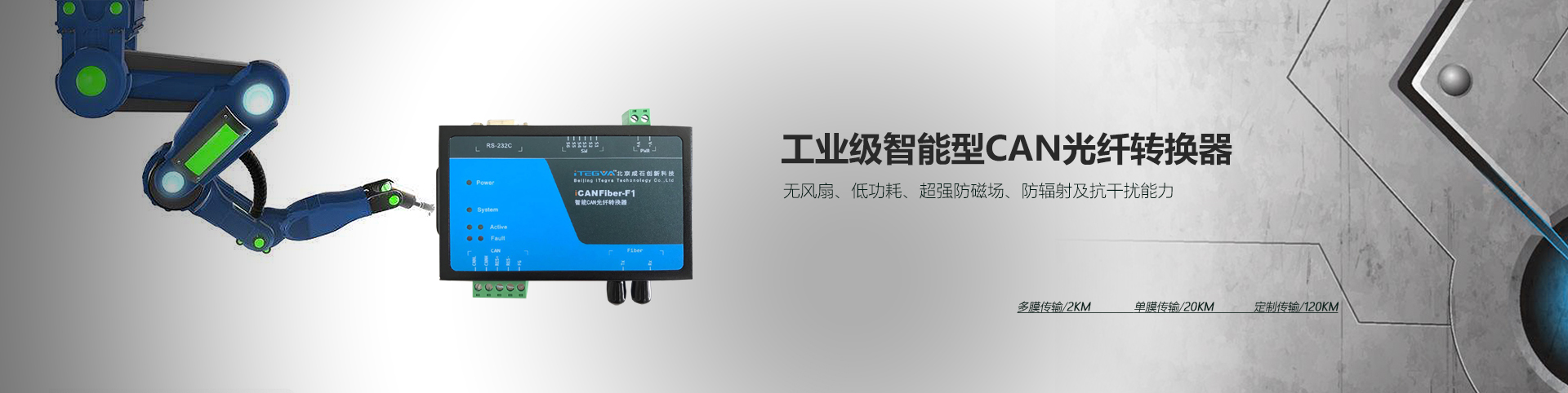 點(diǎn)對點(diǎn)型 工業(yè)級智能CAN(FD)光纖轉(zhuǎn)換器
